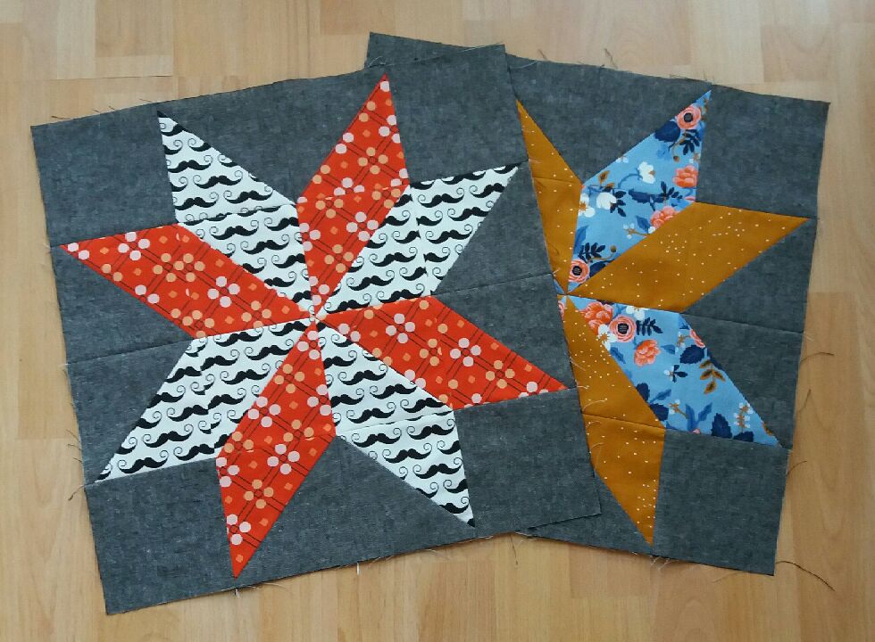 Mit valg af ENKEL blok er faldet på en klassisk 8-pointed stjerne, men i stedet for at sy den af romber, syes den af trekanter (Half Square Triangles/HST), hvilket gør det muligt også nemt at sy den på maskine.