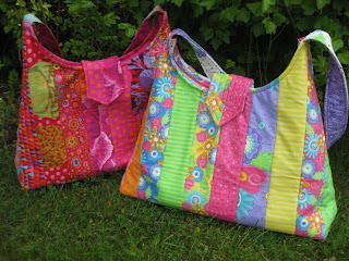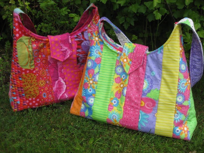 Her er den version hun syede op til Helene Juul Design. Den fik navnet efter kollektionen "Happy", som den blev syet op af, men den mest kendte er nok hendes "Pretty in pink", som er en lidt mindre model - skåret over samme læst. De 2 ses sammen her