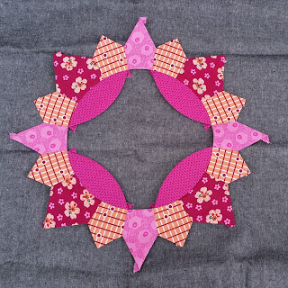 I år har jeg ikke selv tegnet og designet ... for i efteråret fik jeg via instagram øje på en rigtig spændende blok, The Brimfield Block og tæppet syet af det.