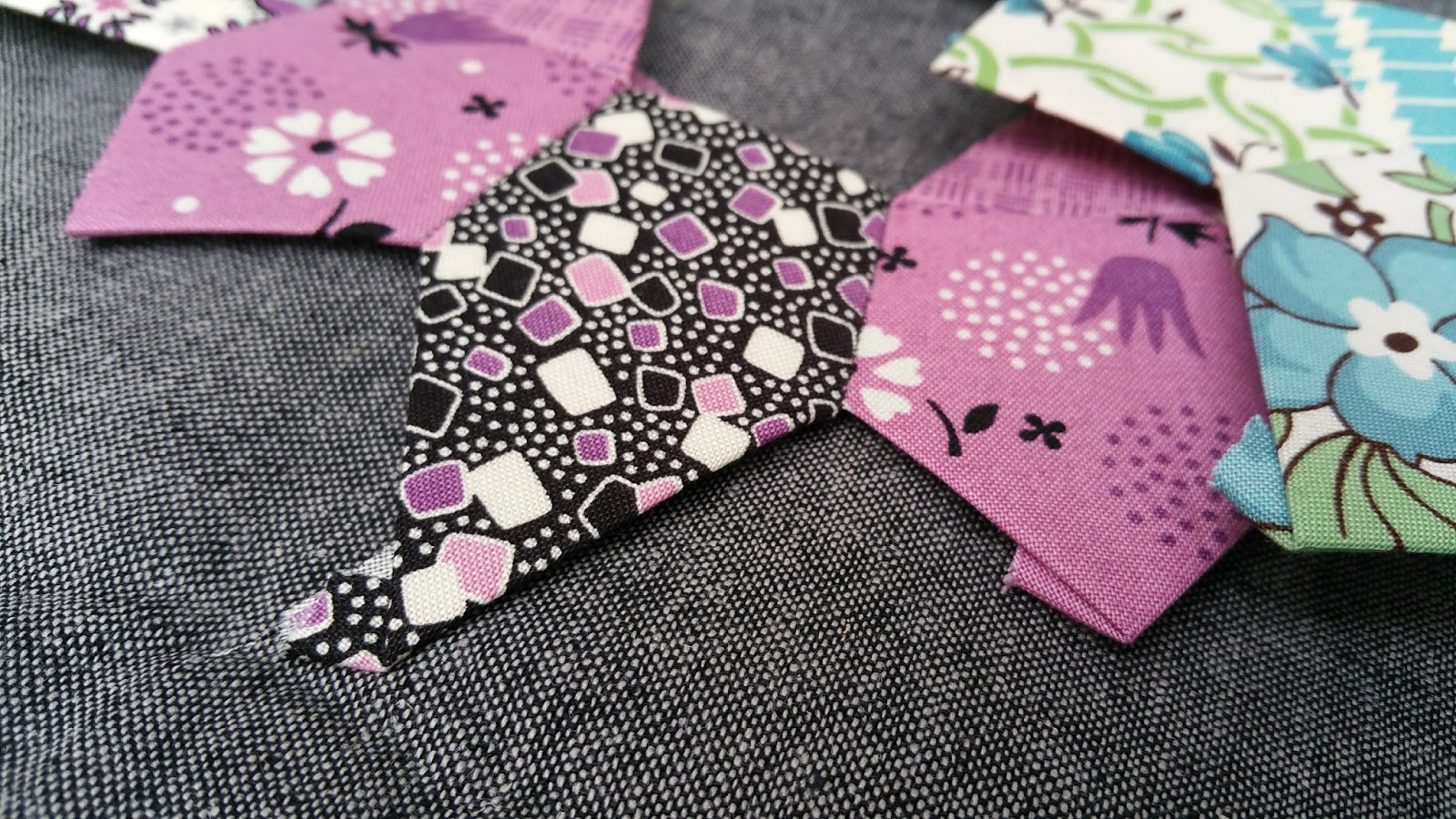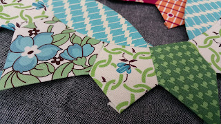 Og her er et par snigkig på endnu et par blokke, så man fornemmer lidt mere af, hvordan projektet kommer til at se ud. Som man kan se, så bliver det et scrappy projekt; 4 nye stoffer til hver blok. Alle Denyse stoffer med et par få undtagelser.