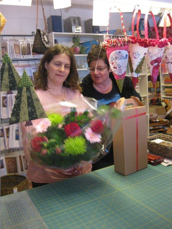 På trods af juletravlheden havde adskillige valgt at lade julehandel være julehandel og fik en lille kreativ pause bænket rundt om bordet, hvor de under Marias kyndige vejledning foldede og syede. På mit flickr-album kan du se flere billeder fra denne dag.