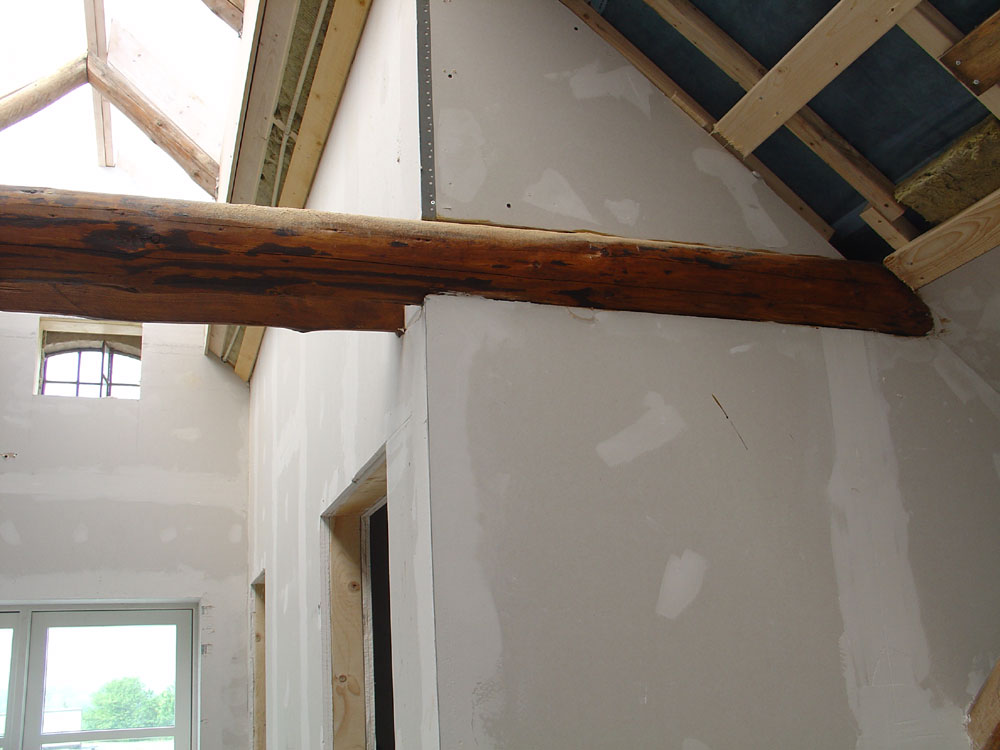 Der er stadig et stykke vej, men det begynder at ligne noget. Lyst og lækkert bliver det. Still a lot of work, but it's taking shape. It will be a nice loft full of light.