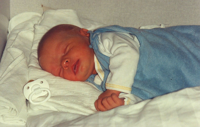Her er han bare et par timer gammel. Jeg kan næsten ikke tro, at der er gået 20 år! Here he is, only a couple of hours old. I can't believe 20 years has passed!