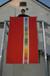 og Karin en rulle med nogle dybe/intense (Amish-lign) farver på en karrygul bund