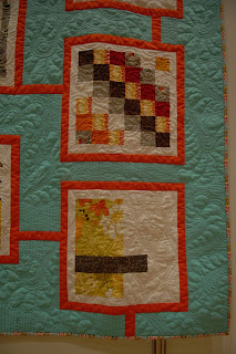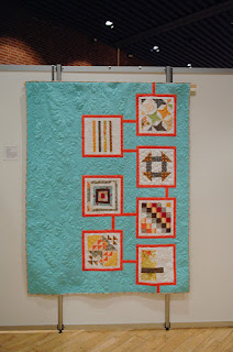 Her er et par billeder af min quilt fra udstillingen. Det er min kære mand, Albert, der tålmodig stod i kø og ventede på at blive lukket ind sammen med alle pw-damerne, som har fotograferet min og de andre pigers quilts. Du kan se alle vores moderne quilts på butikkens flickr-album.