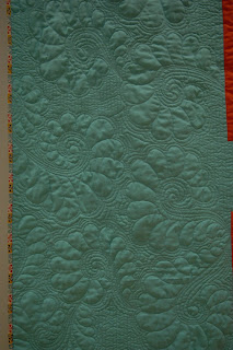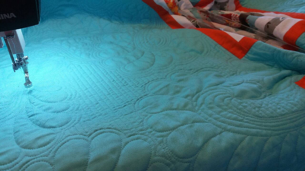 Onsdag eller torsdag før Træf kom der en sms med ordene "hvilken quiltning vil du have ... hvis jeg får tid?" Håbet blev tændt igen og jeg ønskede mig noget som både var organisk og geometrisk. "Det kan du ikke få! Du må vælge!" var svaret, så jeg valgte organisk. Samme dag kom første billede og det så bare vildt godt ud ... og der var både organisk og geometrisk quiltning ;-)