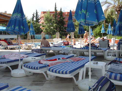 hed ørehængeren fra gruppen "På Slaget 12" og ungerne og jeg kunne synge samme sang i går efter en DEJLIG uge i Tyrkiet. Selvom jeg hverken kan lide varme og for meget sol og ikke bader, så har jeg jeg alligevel haft en rigtig dejlig ferie i Alanya med mine unger, mine forældre og min bror og hans kone og børn.