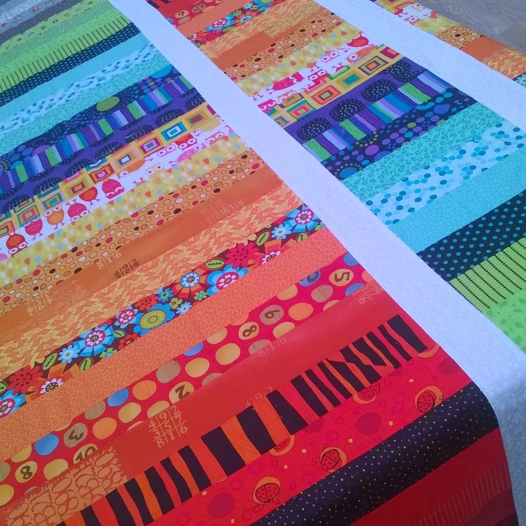 Jeg har syet 3 modeller til WJCC's repro-abo pakker i 2014. Den første var en løber med pile. Den kan jeg ikke lige finde et billede af, men her er en lille babyquilt, som jeg syede i sommers