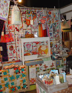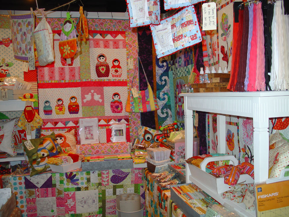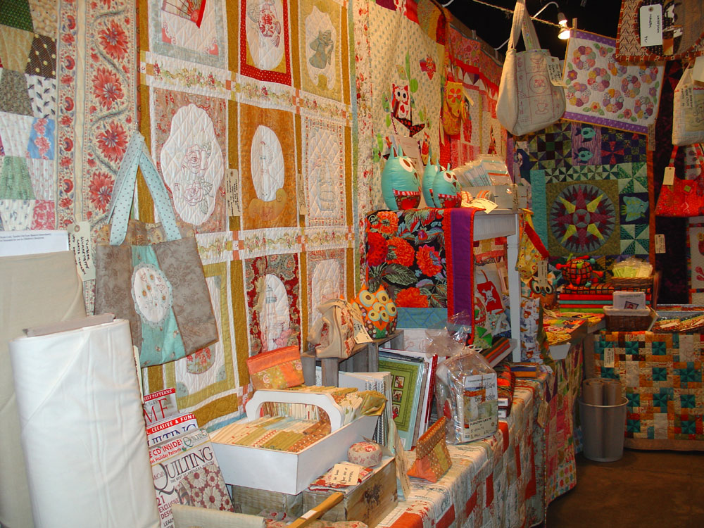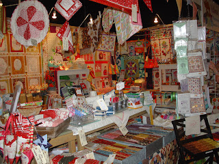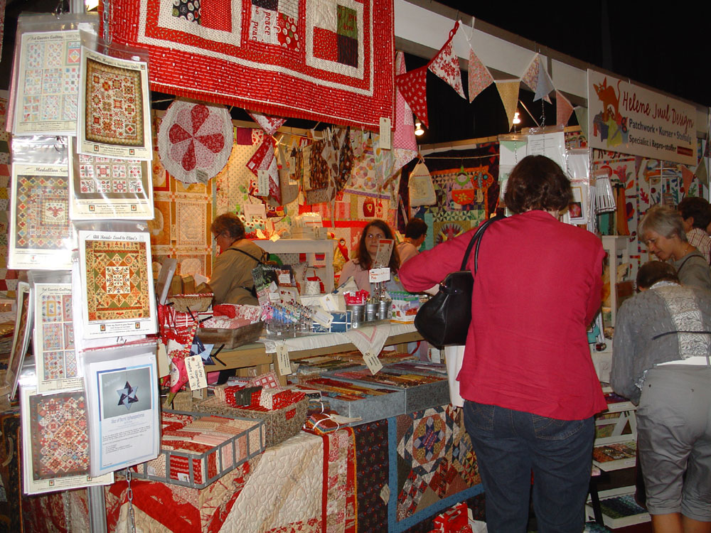 Lørdag var messehallen et "hvepsebo" af ivrige quiltedamer og vi var i lange perioder fuldstændig "belejret" på vores stand. Flere venner og bekendte opgav simpelthen at hilse på os ... de kunne ikke se os for "bare" quiltedamer - og der skal nok også have været et par potentielle kunder, der opgav at handle hos os. Indeklimaet i messehallen var absolut ikke det bedste og iltniveauet til tider temmeligt dårligt. Der var også for lidt plads imellem butikkerne, hvilket gav nogle "trafikpropper" indimellem og gjorde det vanskeligt både for os udstillere og for kunderne.
