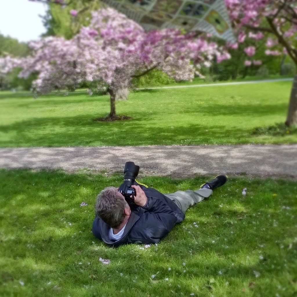 Da foråret kom og de smukke kirsebærtræer var sprunget ud måtte vi en tur i Mindeparken. Her er jeg fuldstændig væk i blomsterhavet. Efterhånden har jeg vænnet mig til at folk kigger mærkeligt efter os, når vi er på vores små foto-safari'er ;-)
