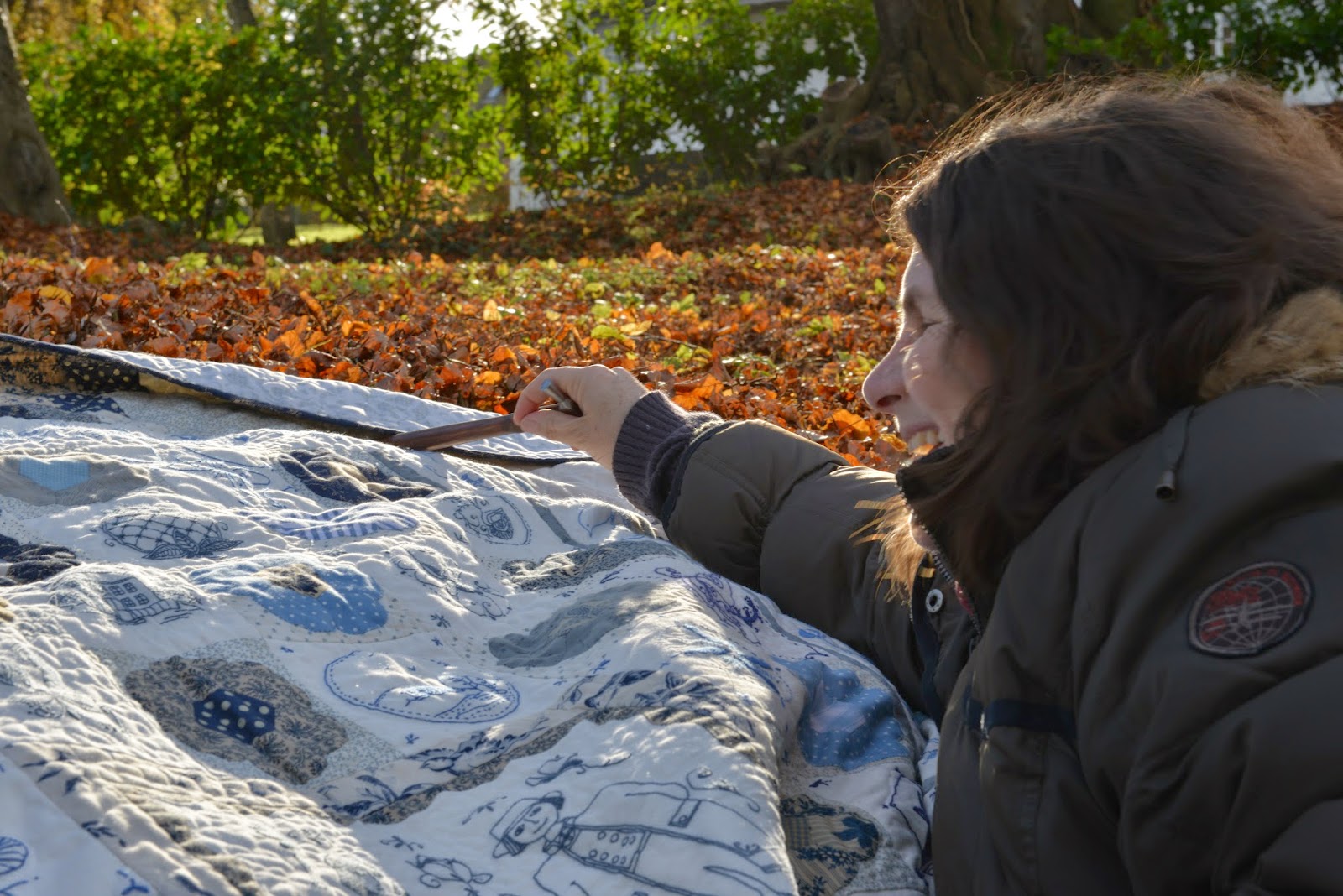 Patchwork kalenderen er som sagt et fælles projekt som vi hygger os meget med igennem året. Det gælder hele tiden om at være opmærksom på at finde de rigtige quilts til de rigtige årstider ... og finde de rigtige (og nye) locations, så hver kalender bliver unik og anderledes.
