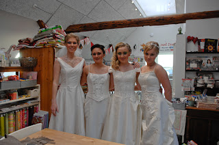 Albert havde en fotoopgave for frisør La Cuttasamt en sød dame, der sælger brudekjoler. De brugte hele formiddagen på at make-up'e og sætte hår og diademer og iklæde de 4 yndigheder de flotteste rober ... og da jeg havde lukket pw-butikken fik de lov til at...