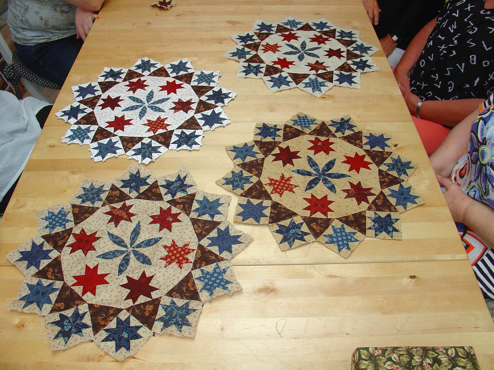 Ikke alle havde fået lavet deres "hjemmearbejde" (læs = fået syet midterblokken som de fik udleveret i april), men her er et billede af de færdige midterblokke ;-)