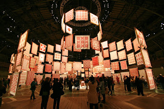 Det skulle have været en HELT FANTASTISK udstilling idet quilts'ne hang fra loftet, oplyst i et ellers mørkt rum
