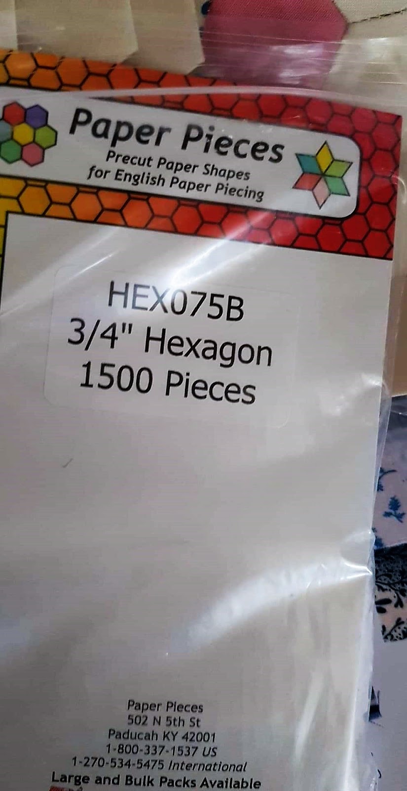 - 1 stk pose med 1500 stk 3/4" hexagoner fra Paper Piecers