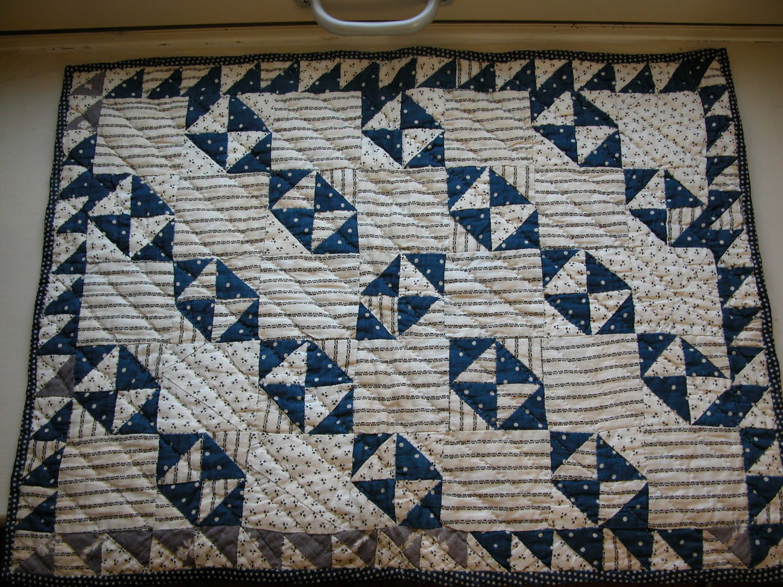 Et andet eksempel er denne smukke Hour Glass dukkequilt syet af den kendte quilter og historiker Ann Hermes, der ligeledes syr af antikt stof.