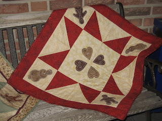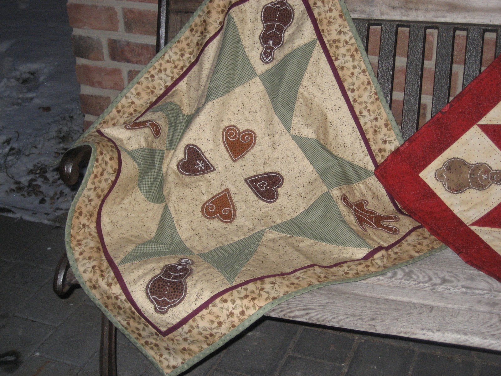 Karen og en flok tyske quiltere har syet Northern Quilts Kagemandsdug, som de har købt mønstre til hos mig.