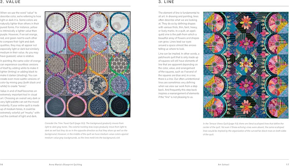 Bogen Anna Maria's Blueprint Quilting udforsker farver, mønstre og teknikker vha. 16 fine projekter ud fra 4 simple designs, som hun kalder "Blueprints" (kan vel bedst oversættes som en teknisk tegning af et design og bruges f.eks. indenfor konstruktion/design). Disse såkaldte "Blueprints" bruger Anna Maria når hun designer sine quilts.