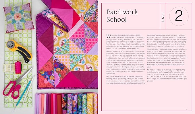Bogen er utrolig flot og inspirerende og giver dig et kig "behind the scenes" på Anna Marias designproces. Der er forskellig sværhedsgrad på projekterne som er nemme at gå til. Teknikkerne er hovedsagelig maskinsyning , men der er også lidt håndsyning (EPP) og applikation. De 16 projekter er hovedsagelig små og store quilts, men der er også mønster på en taske, et vinduespanel (der fint kan laves som en bordløber) og en collage.