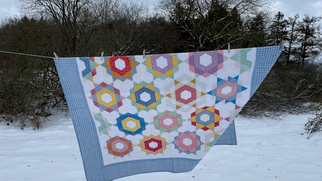 Quiltens blokke syes som almindelig maskinsyning i inch.