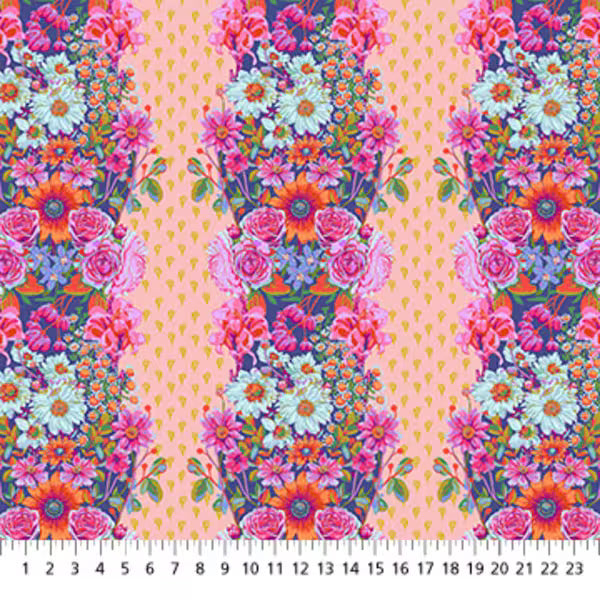 Beata's Garden er et bortstof, hvor blomsterranker er trykt i "kolonner" henover stoffets bredde. Det gør det oplagt til at bruge som borter på en quilt.