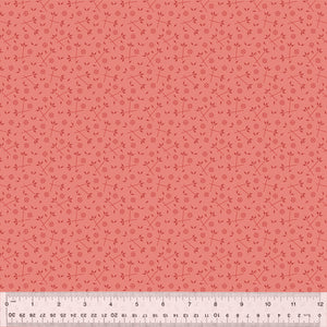 Dette print er rosa i bunden med et fladedækkende tone-i-tone-print i mørkere rosa af små grene og blade. Et rigtig fint basisstof.